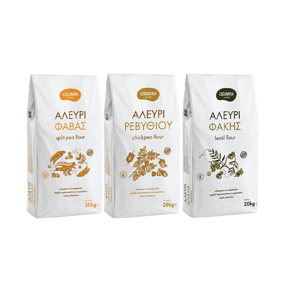 Tρία άλευρα από ελληνικά όσπρια (ρεβίθι, φακή, φάβα) από το κτήμα του Αγρότη.